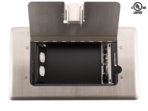 - Available provisions for AC Duplex power receptacle, Decora®, AAP®, MAAP® devices, or up to eight (8) Neutrik® D type connectors, and more